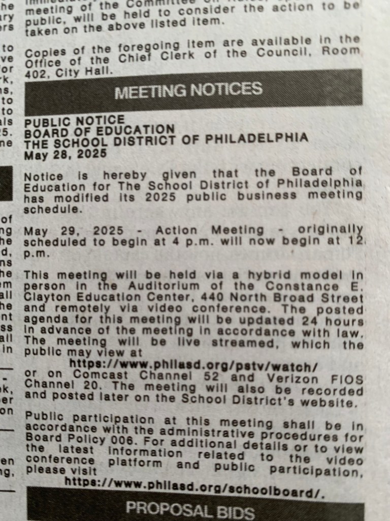 Legal Notice on page B2 in May 28,2025 Philadelphia Inquirer