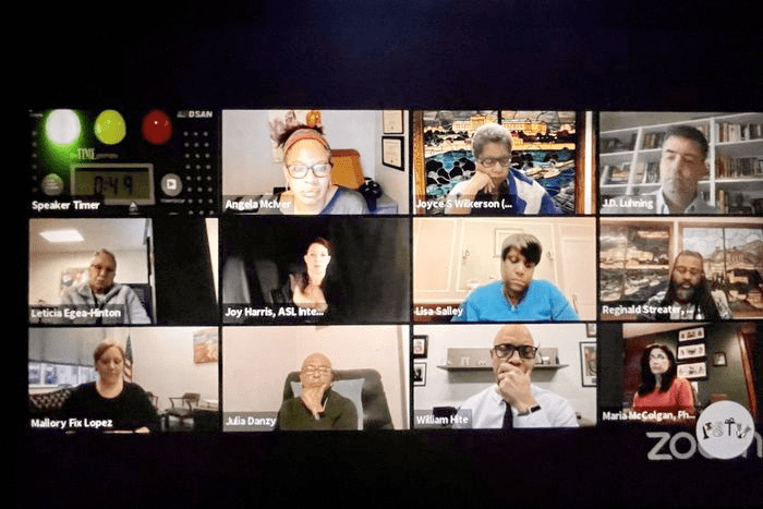 A Philly school board meeting on March 18, 2021. Kristen A. Graham